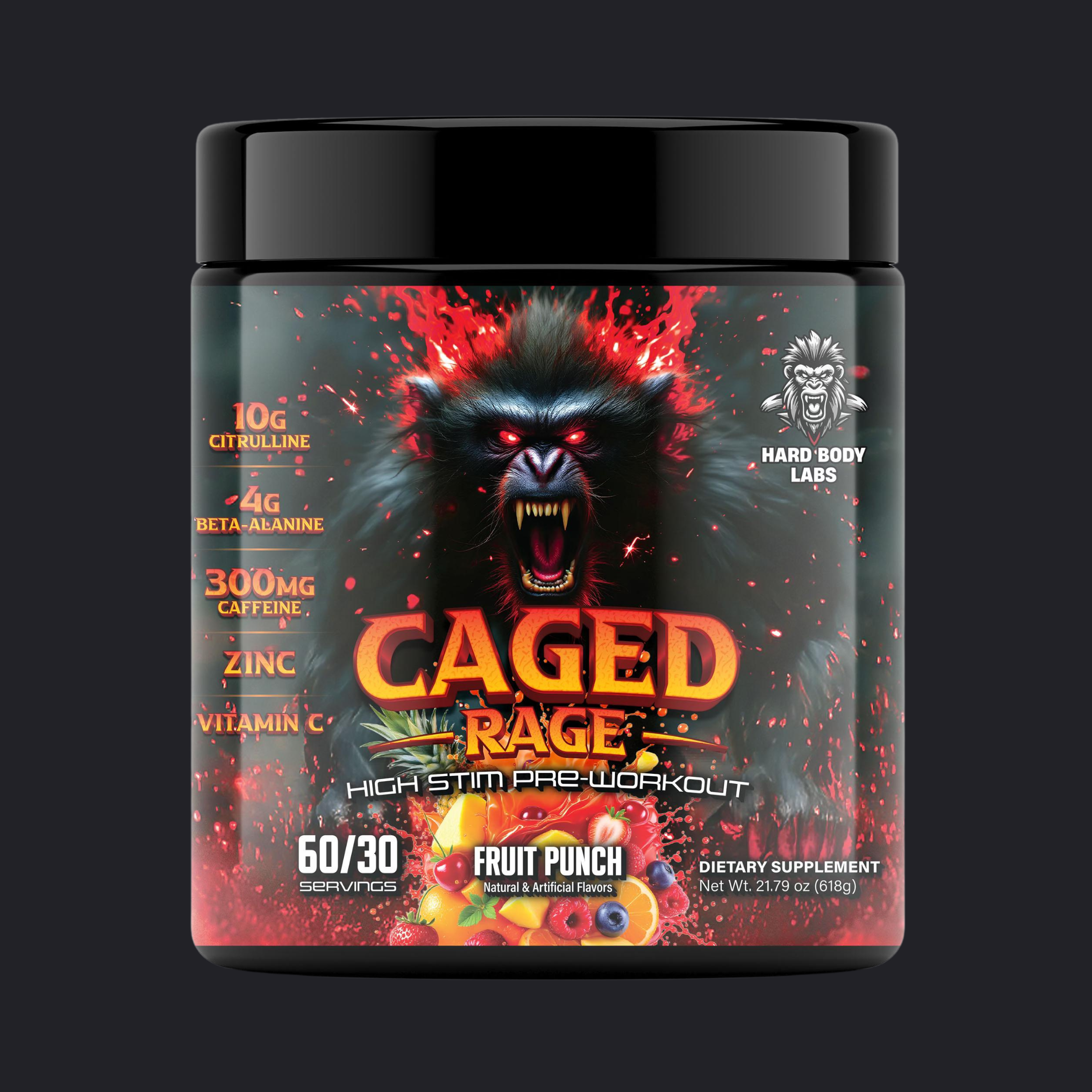 Go full savage with CAGED RAGE – Fruit Punch, the ultimate high-stim pre-workout by Hard Body Labs. Engineered to erupt your energy, amplify your focus, and supercharge your pumps, this beastly blend delivers 10g Citrulline, 4g Beta-Alanine, and a clean 300mg Caffeine dose.